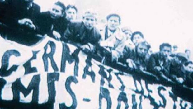 (Fotoğraf: Salvador’la birlikte Türkiye’den kovulan bir diğer Yahudi mülteci gemisi Struma’ya asılan “Bizi kurtarın!” pankartları)