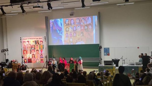 MLPD, Anti Faşist Feminist, Hollanda’dan Rote Morgen, Fransa’dan ADKH, Junge Welt, Verdi, Yeni Kadın ve Volkswagen işçisi olmak üzere 8 panelistin katıldığı panelin açılış konuşması yapılıp kitle selamlandıktan sonra, 2019 Erfurt Deklerasyonu kitleye okundu ve sırasıyla panelistler tanıtıldı.