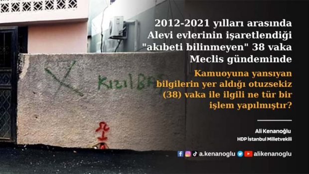 Kenanoğlu, İçişleri Bakanlığı’na verdiği soru önergesinde 2012 ve 2021 yılları arasında yaşanan 37 benzer vakayı hatırlatarak Alevilere ait evlerin işaretlenmesinin kamu otoritelerince gerekli adımların atılmamasından kaynaklı olduğunu ifade etti.