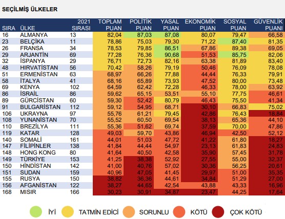 28 ülkede medya özgürlüğü durumunun “çok kötü” kategorisinde yer aldığı RSF Endeksi’nde, 2021 Şubatı’ndaki darbe sonucu medya özgürlüğünün 10 yıl geriye gittiği Myanmar (176), Çin (175), Türkmenistan (177), İran (178), Eritre (179) ve Kuzey Kore (180) son sıralardaki ülkeler olurken, RSF’ye göre basın özgürlüğünde liderlik Norveç’in.