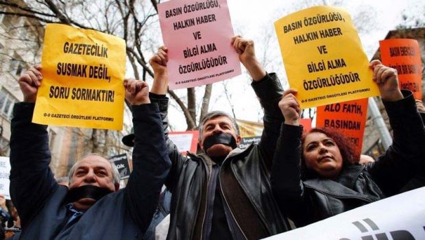 “Recep Tayyip Erdoğan’ın aşırı yetkilerle donatılmış Cumhurbaşkanlığına ve otoriterliğine, basın özgürlüğünün hiçe sayılması ve yargı sistemine müdahaleler eşlik etti. Yargı, Erdoğan’ın talebi üzerine tutuklamalar yapsa da bazı hakimler ‘aşırıya kaçan baskıya’ ses çıkarmaya başladı: Bazı gazeteciler,‘Cumhurbaşkanı’na hakaret’, ‘örgüt üyeliği’ veya ‘örgüt propagandası’ gerekçelerine dayandırılan keyfi kovuşturmalarda beraat etti. Gazetecilere yönelik tutuklamanın yerini adli kontrol aldı. Temmuz 2021’de gazeteciler, AFP foto muhabiri Bülent Kılıç’ın şiddet görerek gözaltına alınmasının ardından, Olağanüstü Hal (OHAL) ilanından sonra ilk kez kitlesel eylem yaptı.”