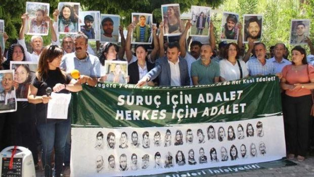 Urfa’nın Suruç ilçesinde 20 Temmuz 2015’de IŞİD’in bombalı saldırısı sonucu yaşamını yitiren 33 kişi katledildikleri Amara Kültür Merkezi bahçesinde anıldı. Suruç İçin Adalet Platformu öncülüğünde yapılan anmaya, Halkaların Demokratik Partisi (HDP) milletvekilleri, Demokratik Bölgeler Partisi (DBP), Sosyalist Gençlik Dernekleri Federasyonu (SGDF), Ezilenlerin Sosyalist Partisi (ESP), sivil toplum örgütleri temsilcileri ve çok sayıda yurttaş katıldı.