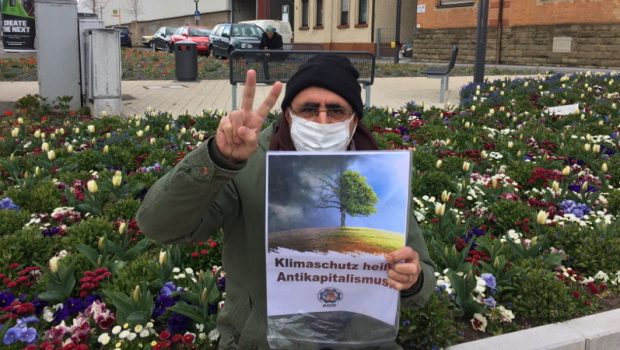 Koronavirüs salgını nedeniyle 5. Küresel İklim Grevi ile dayanışmak için Almanya Göçmen İşçiler Federasyonu (AGİF), “İklimi antikapitalist mücadele korur” şiarıyla eyem yaptı.
