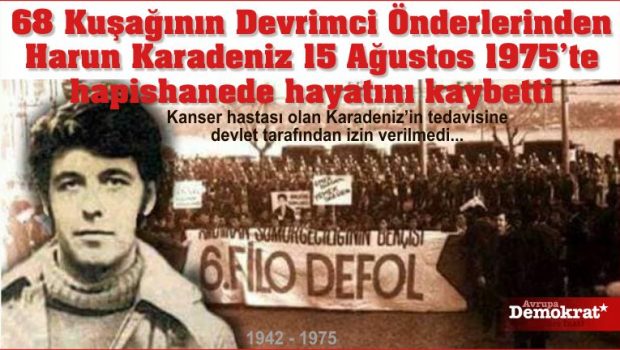 68 Kuşağının Devrimci Önderlerinden Harun Karadeniz 15 Ağustos 1975’te hapishanede hayatını kaybetti…