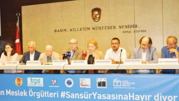 “Dezenformasyonla mücadele” adı altında hazırlanıp Meclise sunulan yasa taslağını protesto eden 7 basın meslek örgütü İstanbul’da basın toplantısı yaptı: Sansür yasasına hayır.