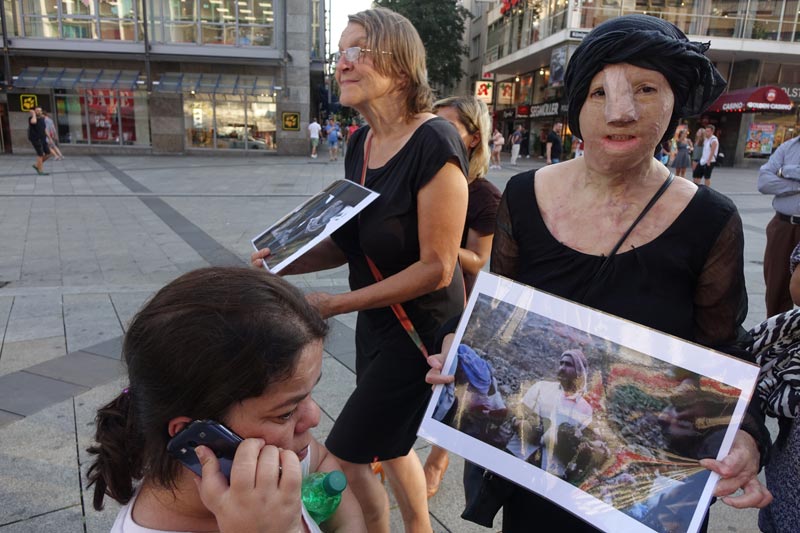 Belli bir proje çerçevesinde DAİŞ çetelerinin ellerinden alınan kadın ve çocuklar, 28 Mart 2015’te Almanya’ya tedavi için getirildiler. Gelen bu çocukların arasında 10-14 yaş arası üç kardeş olan ‘İsmail, Ferhat, Basma’da vardı. Bu kardeşler yakılmak için alındıkları çember içinden büyük bir tesadüf eseri kurtulmuşlar. ‘’biz 150 çocuktuk, 2 tane de kadın vardı. Bizi bir alana götürdüler. Orda etrafımızı çevirip, üzerimize ve çevremize benzin döküp, ateşe verdiler. Bizler yanmaya başladığımızda, tesadüfen havada uçak sesleri gelmeye başladı. Uçak seslerini duyan DAİŞ çeteleri saklanmak için kaçmaya başladılar. O zaman bizler, daha yaşayanlar fırsattan yararlanarak, ateş çemberini aşıp, kaçtık…Uzun bir süre dizlerimiz üzerinden sürünerek, yol aldık. Saatlerce süren yüz üzeri sürünmeden sonra akşam karanlığı başladı. O ara biraz nefes alıp, dağlara doğru kaçmaya başladık. Nihayet bizi bulan PKK militanları ve yeniden yaşama umudu ve sevinci’’… kelimelerin bitip, yerini gözlerden yanaklarının üzerinde yol arayıp, dökülen göz yaşları ve hıçkırığa boğulan gırtlaktaki sesin feryadı ve inlemesi ile suskunluğa dolan ortamda anlatımlarını sürdüremeyen üç kardeş.
