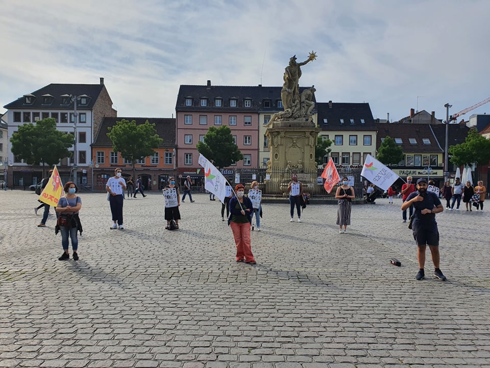 Faşizmin lanetlendiği Martktplatz’daki eyleme AGİF, SKB, Young Struggle, SYKP ve Migrantantifa -Rhein-Neckar adlı kurumlar katıldı.