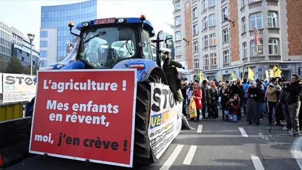 Belçika’daki çeşitli çiftçi birliklerinin çağrısıyla yaklaşık 200 çiftçi, Brüksel’deki AB Komisyonu ve AB Konseyi önündeki Schuman Meydanı’nda bir araya geldi.