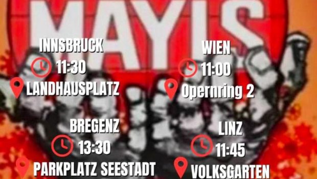 Avusturya Demokratik İşçiler Federasyonu, 1 Mayıs için üç dilde çağrı yaptı. Çağrı şu şekilde;