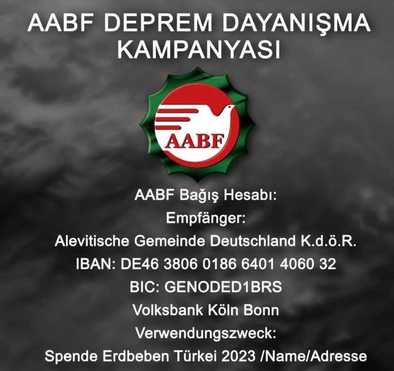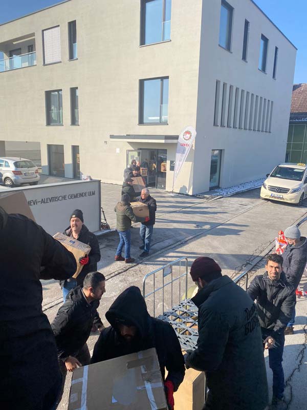 Herrlinger Str. 83 adresinde bulunan Alevi Kültür Merkezi ve Cemevi (AKM) Ulm, depremzedeler için ilk günden beri yoğun çalışıyor. Ülkemizde meydana gelen asrın felaketleri arasına giren, büyük deprem sonrası, çok sayıda Türkiye kurum, kuruluş ve bireyler canla başla yardım için koşturuyor.