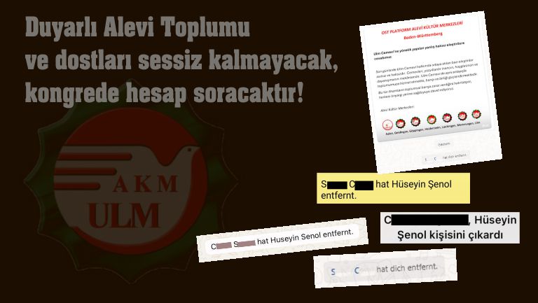 Ulm AKM ve Cemevi’ndeki yöneticilerin ayrımcı uygulamaları ve kamuoyuna yönelik suskunlukları yeni bir aşamaya geçti. Şimdi de gazetecilere yönelik doğrudan sansür ve dışlama adımları atılıyor. Gazetemize ulaşan bilgiye göre, gazeteci Hüseyin Şenol, kurumun WhatsApp grubundan gerekçesiz şekilde çıkarıldı. Bu yalnızca bir teknik işlem değil; ifade özgürlüğüne, kamuoyuna bilgi verme hakkına ve basın ahlakına doğrudan müdahaledir.