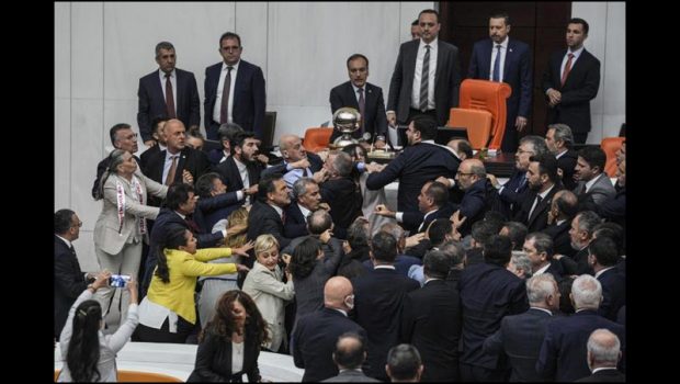 Anayasa Mahkemesinin (AYM) Can Atalay’ın milletvekilliğinin düşürülmesinin “yok hükmünde” olduğuna yönelik kararı üzerine TBMM Genel Kurulu bugün olağanüstü toplandı. Toplantıda, AKP Meclis Grubu İdare Amiri Fehmi Alpay Özalan’ın başını çektiği AKP’li vekiller kürsüde konuşan TİP Milletvekili Ahmet Şık’a saldırdı, DEM Parti Grup Başkanvekili Gülüstan Kılıç Koçyiğit’in ve CHP Milletvekili Okan Konuralp’in kaşını yardı. Saldırıda Meclis Divanı’nın önü kana bulandı.