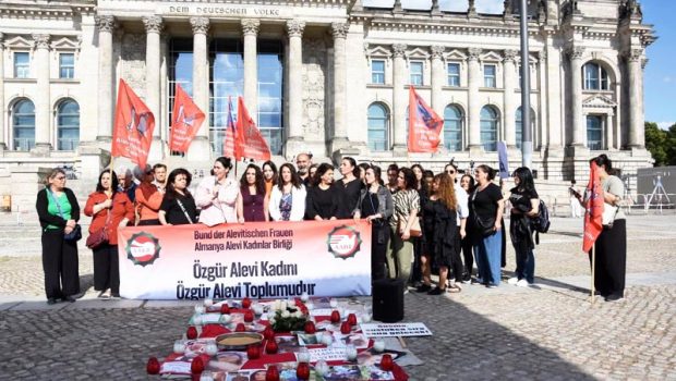 Dün Alman Parlamentosu önünde düzenlenen protestoya, AAKB, AABF İnanç Kurulu, BAT-Cemevi Yönetim, Kadın ve İnanç Kurulları, Arap Alevileri Birliği, kardeş dernek ve siyasi parti temsilcilerinin yanı sıra çok sayıda kişi katıldı.