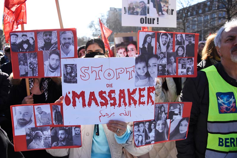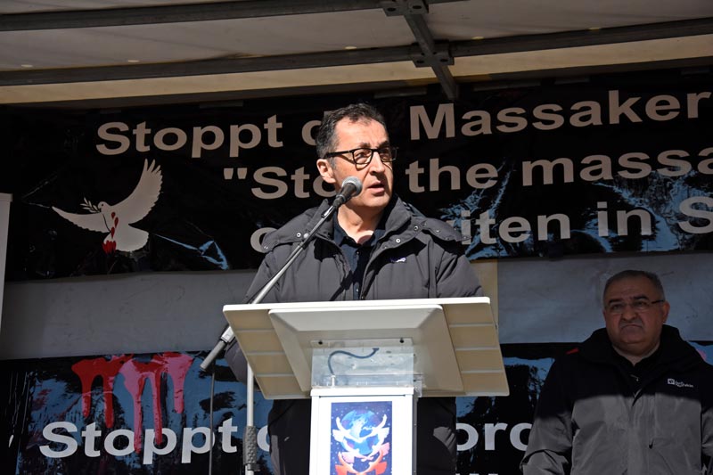 Başta Federal Almanya olmak üzere tüm Avrupa ülkelerinin Suriye’deki katliama dur demesini bekliyoruz. Daha düne kadar terörist olarak etiketlenen, uluslararası yakalama emri ile aranan Colaniye ve onun hükümetine verilen desteğin geri çekilmesini beklemekteyiz.