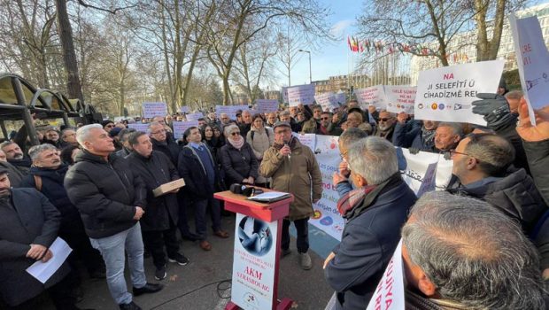 Açıklamada söz alan Fransa Alevi Birlikleri Federasyonu Eşit Başkanı Mehmet Gündüz, “Ortadoğu yeniden dizayn oyunu ve çıkarlar için bir savaş haline döndü. Suriye’de bir diktatörün yıkılışına demokrasi diyen Avrupa ve emperyalistler güçler, yeni bir diktatörlüğün kurulmasına hizmet eder hale gelmişlerdir. Ortadoğu’daki Kürtlerin, Alevileri, Ezidilerin, Süryanilari birbirine kırdırarak, o ülkelerdeki yer altı ve yer üstü kaynaklara hükmetmek istiyorlar. Bu haksız savaşa mazlum hakların yanındayız. AKP-MHP, Esad’ın yıkılmasıyla demokrasi hayranı kesilerken, kendi ülkelerine dönüp bakmıyorlar. Esad’ın yıkılmasıyla Türkiye’deki ekonomik, siyasi, sosyal krizi örtbas ederek barış meleği kesilen Erdoğan ve Bahçeli’ye söyleyeceğimiz söz ise; dönün kendi tarihinize bakın olacaktır. Biz bu sisteme karşı mücadeleyi sürdüreceğiz” dedi.