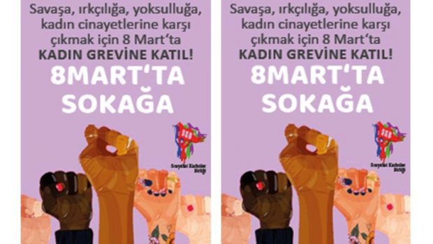 “İşyerinde, evde, sokakta, hayatın tüm alanlarında eşe, sevgiliye, abiye, oğula, babaya, patrona, kapitalist erkek egemen iktidara karşı, erkek egemenliği nerede hüküm sürüyorsa, ona karşı 8 Mart günü kadın grevinde olacağız. Kimimiz işyerine gitmeyerek, evde temizlik yapmayarak, yemek pişirmeyerek, alışveriş yapmayarak, çocuk bakmayarak, kimimiz 1 saat, kimimiz tam gün hayatı durdurarak greve katılacağız. Gelin kadınsız bir gün neymiş gösterelim, hayatı durduralım. Yaşasın 8 Mart Dünya Emekçi Kadınlar Günü. Kadın Greviyle hayatı durduralım.”