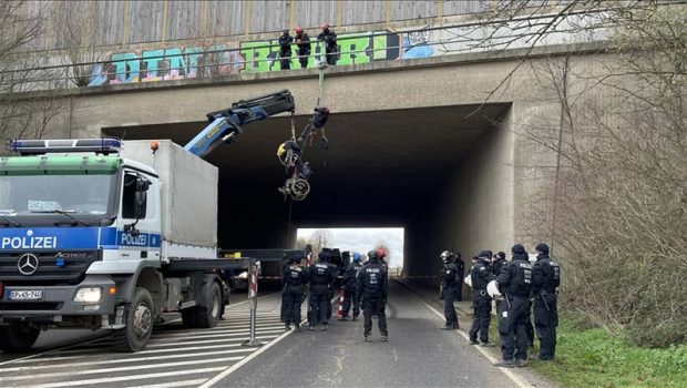 Almanya’nın Kuzey Ren Vestfalya (KRV) eyaletinde “linyit köyü” olarak bilinen Lützerath’ta, bir grup engelli çevreci kömür madeninin genişletilmesinin doğaya vereceği zarara dikkati çekmek amacıyla eylem düzenledi.