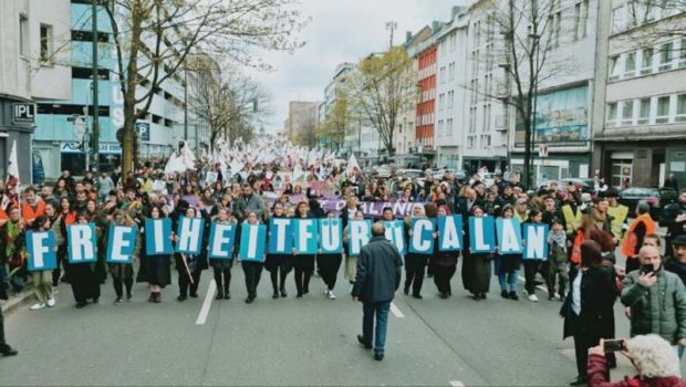 Almanya’nın Düsseldorf kentinde PKK Lideri Abdullah Öcalan’ın özgürlüğü için onbinlerce kişi yürüyüşe geçti.