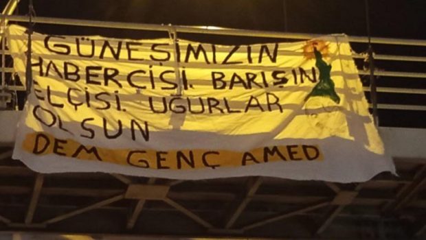 DEM Genç Amed, Sırrı Süreyya Önder için bir köprüye “Güneşimizin habercisi, barışın elçisi uğurlar olsun” pankartı astı.