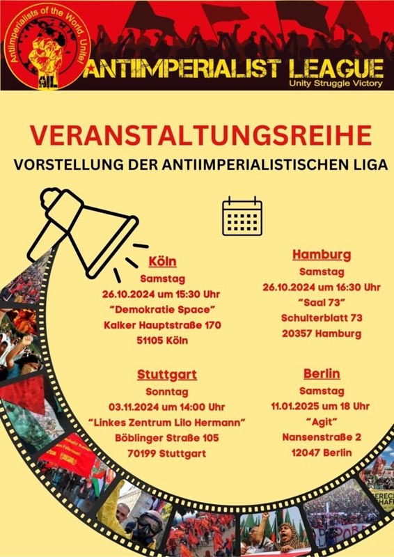Antiemperyalist Lig kuruluş çalışmaları devam ediyor. AIL`in tanıtımı amacıyla Almanya`nın Leipzig kentinde gerçekleştirilen tanıtım sonrası, Köln, Hamburg, Stuttgart ve Berlin kentlerinde tanıtım ve bilgilendirme amaçlı toplantılar düzenleniyor.
