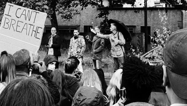 Stuttgart’ta bir nazi göstericilere saldırdı! Önce orta parmağını gösteren ırkçı, daha sonra şemsiyesiyle saldırdı. Tepki büyük olunca da, ırkçı kaçmak zorunda kaldı.