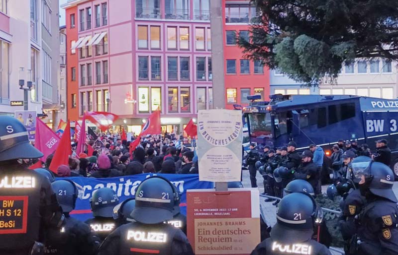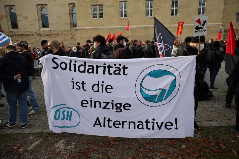 Faşist parti Almanya için Alternatif (AfD)’nin Stuttgart merkezinde Marktplatz’ta gerçekleştirdiği ”Yoksulluk, Acil Durum ve Soğuğa Karşı Kendinizi savunun” adı altındaki miting, kendi taraflarından bile yeterli ilgiyi görmedi. Faşistlerin gösterisine karşı ise, yüzlerce kişi protesto gösterisinde bulundu.