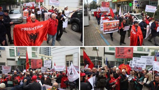 Sivil toplum örgütlerinin çağrısıyla Sırbistan’ın Tiran Büyükelçiliği önünde toplanan onlarca kişi, ellerinde “Tüm Arnavut toprakları seninle Kosova”, “Trepça ve Ujman, Kosova’nın zenginliği”, “Kosova-Arnavutluk, biz biriz”, “Arnavut topraklarında birliklere hayır”, “Kosova’da Sırp Cumhuriyetine hayır” yazılı pankartlar, bayrak ve farklı ulusal Arnavut sembolleri taşıdı.