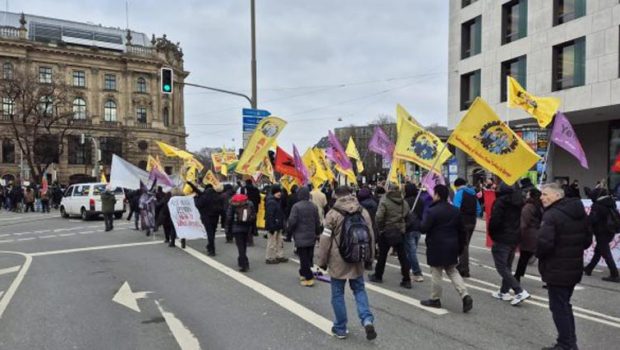 ATİK tarafından geçen yıl başlatılan „Ayağa Kalk, Geleceği Kazan“ kampanyasının finali, 15 Şubat’ta Münih’te NATO Güvenlik Konferansı’na karşı düzenlenen protesto yürüyüşünde gerçekleşti. Eylem, „Anti-Siko“ Platformu tarafından örgütlendi. ATİK korteji, „Savaş Makinesi NATO’yu Durdur“ pankartıyla yürüyüşe katıldı ve yürüyüş boyunca coşkulu slogan ve konuşmalarla etkin bir şekilde yer aldı.