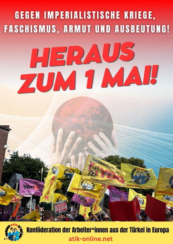 ATİK, Türkçe, Almanca, İngilizce ve Fransızca 1 Mayıs afiş ve bildirileriyle yaptığı açıklamada emperyalist savaşlara, faşizme, yoksulluğa ve sömürüye karşı işçileri alanlara çağırdı. Artan militarizm, derinleşen yoksulluk ve işçi haklarına yönelik saldırılar vurgulandı.