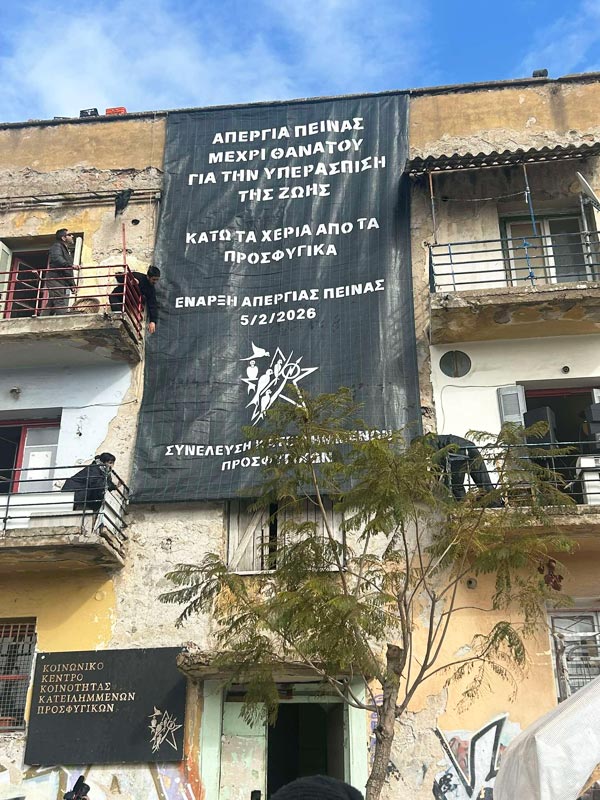 Yerleşkenin ön cephesine asılan büyük pankartta, “Hayatı savunmak için ölüme kadar açlık grevi. Prosfygika’dan ellerinizi çekin. Açlık grevi başlama tarihi: 5/2/2026” ifadeleri yer aldı. Direnişin başladığı gün Prosfygika’nın önünde çok sayıda dayanışma ziyareti ve açıklama da gerçekleşti.