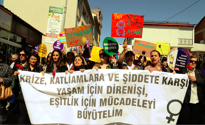 Sosyalist Kadınlar Birliği (SKB), Kürt Kadın Hareketi (TJK-E), Yeni Kadın, Sosyalist Yeniden Kuruluş Partisi (SYKP) Avrupa Kadın Meclisi, Demokratik Alevi Federasyonu (FEDA), Avrupa Demokratik Kadın Hareketi (ADKH), Mezopotamya Halk Kongresi Kadın Kolları, Yaşanacak Dünya, Platform Kurden Anatoliya Navin (PKAN) tarafından kurulan Avrupa Kadın Dayanışması, Covid-19 salgının hızla yayılmasının sağlık malzemelerinin olmaması ve önceden depolarda stoklanmasının payının büyük olduğunu kaydetti. Açıklamada, “Sağlık krizinin sebebinin koronavirüs değil, kapitalizmin kar hırsı olduğu tüm çıplaklığıyla görüldü. Sağlığa, eğitime, doğaya, insana değil savaş için silaha, sermayedarlara bütçe ayrılmasının dolaysız nedenidir yaşanan kriz” denildi.