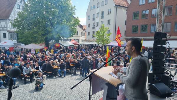 Alman Sendikalar Birliği (DGB) tarafından “Geleceği birlikte düzenliyoruz” şiarıyla gerçekleştirilen 1 Mayıs coşkuyla kutlandı. Sendikaların yanı sıra Ulm şehrinde bulunan örgütlenmelerden ADHF, AGEB, AGİF, ATİF, KON-MED, MLPD, TKP-ML, Partizan, AKM, DİDF, Halk Cephesi, HDP Aktivistleri, Tohum Kültür Merkezi, AJK, SOL Parti (TR), MLKP, Umweltgewerkschaft, SDAJ, DKP, Die Linke, SPD, Yeşiller, Rebell ve InterBündnis gibi çok sayıda kurum 1 Mayıs’ı coşkuyla kutladı. Örgütlenmelerin gençlik ve kadın yapılanmaları da ayrıca bayrak ve pankartlarıyla alanla yerini aldı.