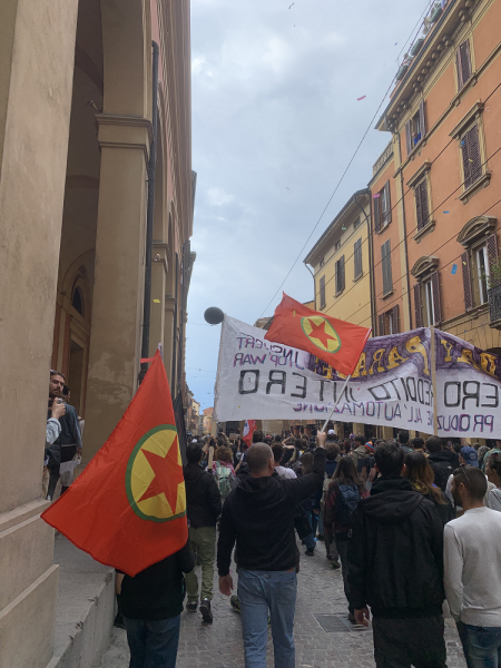 İtalya’nın Bologna kenti 15 Giardini Margherita parkında başlayan 1 Mayıs etkinliğine Kürdistanlılar ve dostları katıldı. Türk devletinin KDP ortaklığıyla gerçekleştirdiği işgal saldırıları kınandı, gerillaya karşı kimyasal silah kullanan Türk devletine karşı tutum alma çağrısı yapıldı.