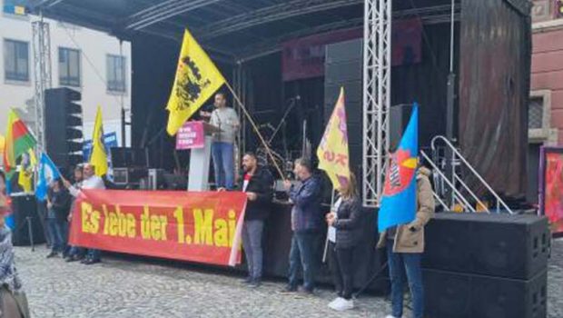 Belçika’nın başkenti Brüksel’de binlerce kişi, 1 Mayıs işçi Bayramını kutladı. Kutlamalara Kürt gerillaların direnişi damgasını vurdu.