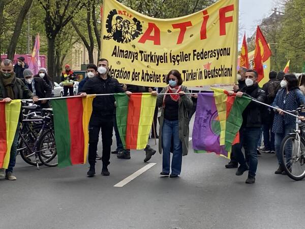 Bielefeld Demokratik Halk Meclisi de kitlesel katılım sağlayarak, 1 Mayıs’ı Garê zaferi, Heftanîn, Zap, Avaşîn direnişlerinin ruhuyla selamladı.