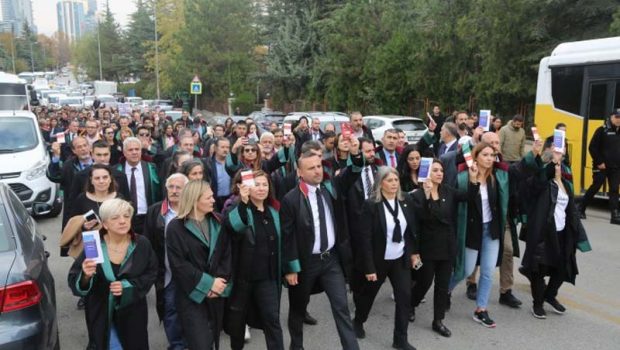Yargıtay 3. Ceza Dairesi’nin AYM kararını tanımaması ve suç duyurusunda bulunmasına karşı avukatlar Ankara’da yürüyüş başlattı. Avukatlar Yargıtay Başkanlığına yürüdü.