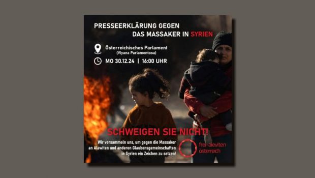 Avusturya Alevi Birlikleri Federasyonu (AABF), Suriye’de yaşanan Alevi katliamlarını ve diğer mazlum halklara yönelik baskıları protesto etmek amacıyla 30 Aralık 2024, saat 16:00’da Avusturya’nın başkenti Viyana’da, Parlamento önünde kitlesel bir miting düzenleyecek. AABF, başta Aleviler olmak üzere tüm duyarlı kesimlere çağrıda bulunarak, bu önemli eyleme katılım göstermeye davet etti.