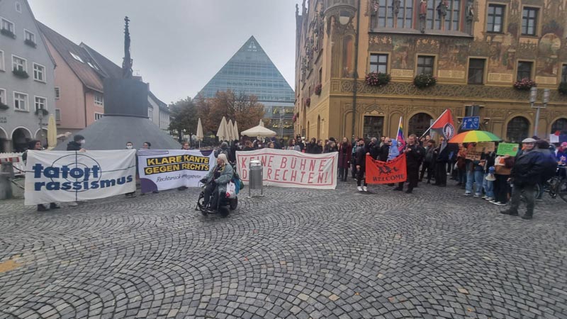 İzinli gösteri, akşamüstü geç saatlerde tren istasyonu önünden yaya bölgesine doğru ilerledi ve Marktplatz’da kısa bir mitingle sona erdi. Neu-Ulm’daki etkinlik yeri hakkında bilgi aldıktan sonra, katılımcıların çoğu oraya doğru ilerledi.