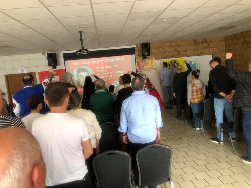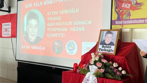 Almanya’nın Ulm kentinde, 7 Aralık’ta dönüşü olmayan ALS hastalığı nedeniyle yaşamını yitiren Ayten Türkoğlu için 7 Nisan Pazar günü anma etkinliği düzenlendi. Ayten yoldaşın ideallerine bağlı kalınacağı sözü verilerek “Daima bizimlesin, daima seninleyiz” denildi.