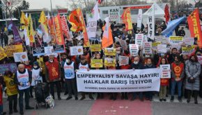 Silahsız Yaşam’ın çağrısıyla yapılan mitinge, çok sayıda yerli ve göçmen sol devrimci, savaş karşıtı gruplar bayrak, pankartlarıyla katıldılar. Gül GÜZEL