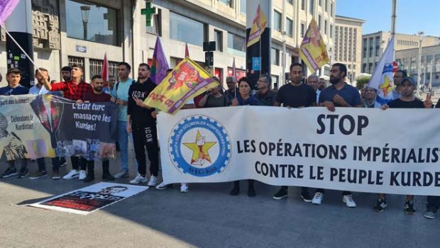 Belçika’nın başkenti Brüksel’de sömürgeci faşist şef Erdoğan’ın Kürdistan’ı işgal politikaları protesto edildi.
