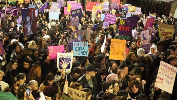 Taksim Tünel’de toplanan binlerce kadın, tüm engelleme ve yasaklama girişimlerine rağmen yürüyerek erkek-devlet şiddetine, savaşa, emek sömürüsüne karşı isyanlarını haykırdı.