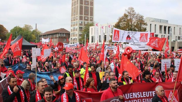 Dev sahnede yapılan konuşmaların ardından müzik grubu coşku dolu anlar yaşattı. IG Metall Baden-Württembergt’te metal ve elektronik dallarında çalışan bir milyondan fazla işçi için yüzde 8 ücret artışı istiyor. İkinci turun olumsuz sonuçlanmasından dolayı umutlar üçüncü toplantıya kaldı. 27 Ekim’deki üçüncü toplu sözleşme toplantısından da anlaşma çıkmazsa, uyarı grevlerinin başlayacağı kesin.