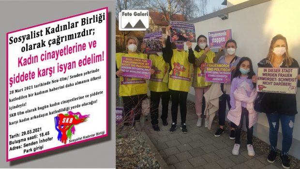 Sosyalist Kadınlar Birliği (SKB) Ulm “Kadın cinayetlerin ve şiddete karşı isyan edelim!” başlığıyla çağrıda bulunarak, kadının öldürüldüğü evin önünde gösteri düzenledi.