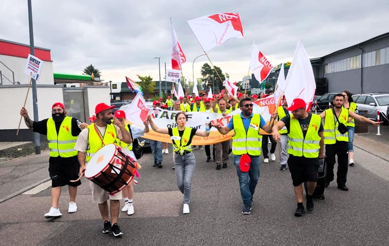 Sendika, geçtiğimiz günlerde üç dilde bir bildiri yayınlayarak 3 Temmuz da işçileri greve çağırdı. Bildiriden kısa bir not: 27 Mayıs 2025 tarihinde gerçekleştirilen 3.toplu iş sözleşmesi oturumunda işveren, NGG ile toplu iş sözleşmesi imzalanmasına yönelik blokaj tutumunun altını çizdi. Bir sonraki müzakereye kadar beş haftalık bir boşluk bırakarak, ilerlemeyi bir kez daha erteledi. Bu süreçte sendika ve işçiler değişik eylemlerle kamuoyu yaratarak, patronları masaya oturmaya ve kendilerine kulak vermeye davet ettiler.