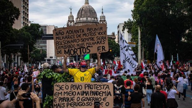 Brezilya’da Kovid-19 salgınına karşı yeterli önlem almayarak yüz binlerce kişinin ölümüne yol açmakla suçlanan Devlet Başkanı Jair Bolsanaro bir kez daha tüm ülkede protesto edildi.