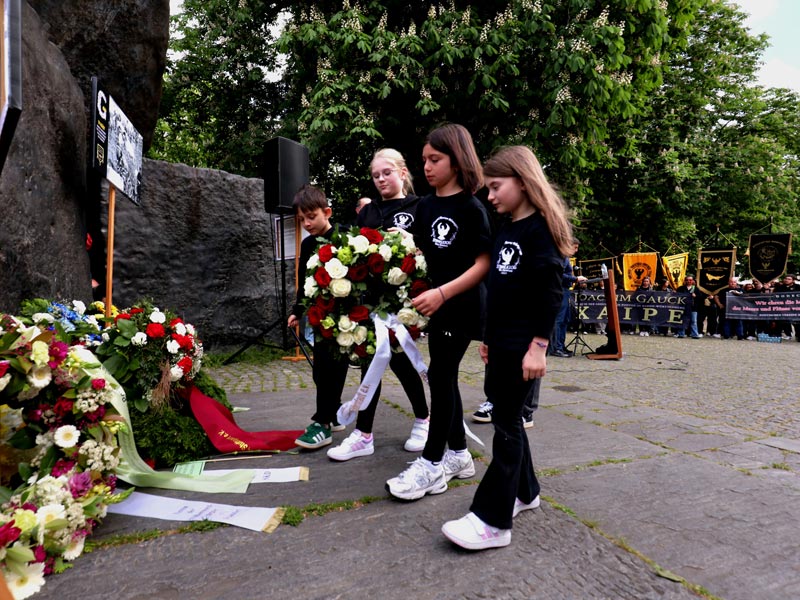 Etkinlikte, Frankfurt Soykırım Karşıtları Derneği de çelenk bırakarak, mağdurlar anısına saygı duruşunda bulundu. Alman Sol Parti (Die Linke) adına yapılan konuşma da büyük ilgi gördü. Çocukların ve gençlerin yoğun katılımı, geleceğe dair umut verdi.