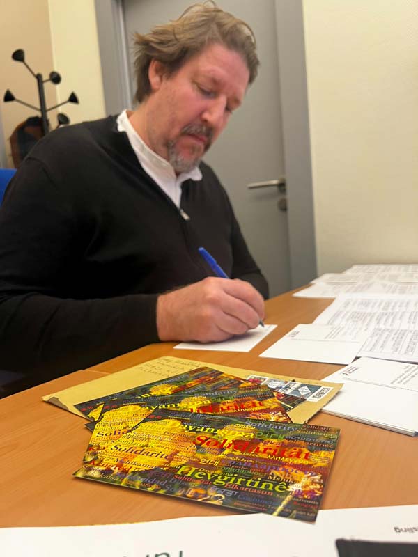 Almanya’nın Köln kentinde siyasi tutsaklarla dayanışma faaliyeti yürüten Dayanışma’nın Sesi Derneği (Stimmen der Solidaritat) yılbaşında siyasi tutsakları yalnız bırakmayın diye alman milletvekilleri, belediye başkanları, akademisyenler ve gazetecilerine kartpostal gönderin çağrısında bulundu.