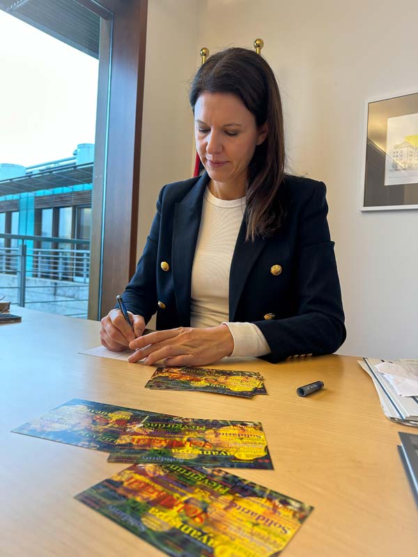 Bu yıl iki çeşit kartpostal hazırlayan Dayanışma’nın Sesi Derneği aynı zamanda alman milletvekillerine hazırladıkları siyasi tutsakların listesini de göndermekte. Yaklaşık bir aydır yürüttüğü dayanışma çalışmasına şimdiye kadar 50’i aşkın milletvekilli ve belediye başkanları katıldı. Aralarında Alman Federal Parlamentonun Başkan Yardımcısı Katrin Göring-Eckhardt, Kültür ve Medya Bakanı Claudia Roth, Gıda ve Tarım Bakanı Cem Özdemir, SPD Genel Başkanı Rolf Mützenich, Avrupa Parlamento Milletvekilleri Sergey Lagodinsky ve Thomas Waitz, Solparti Milletvekilli Clara Bünger, Köln Belediye Başkanı Andreas Wolter, Ren-Vestfalya eyalet milletvekilleri Gönül Eğlence, İlayda Bostancıeri ve Jochen Ott, FDP’li Milletvekilli Knut Gerschau, CDU’lu milletvekilleri Dr. Katja Leikert, Serap Güler ve Jürgen Hardt’ta bulunuyor. Alman siyasetçiler dışında Köln’ün ünlü yazarlarından Günter Wallraff, Akademisyen Profesör Kemal Bozay ile çok sayıda insan hakları aktivisti de katıldı.