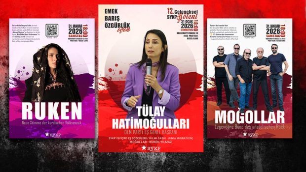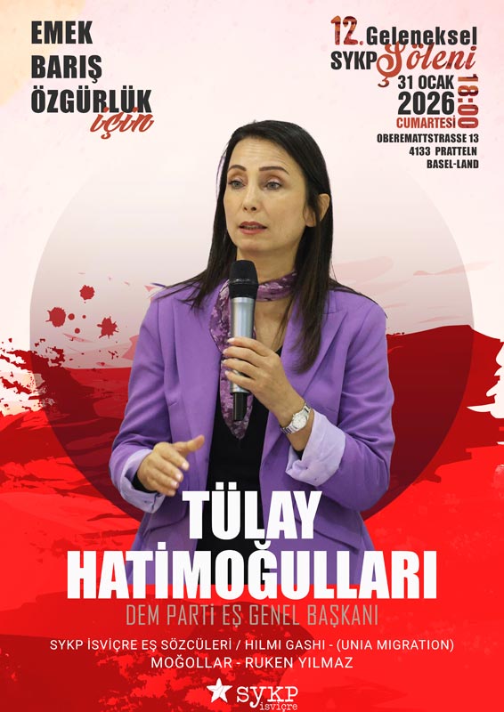 Sosyalist Yeniden Kuruluş Partisi (SYKP) İsviçre, 12. Geleneksel Buluşmasını 31 Ocak 2026 Cumartesi günü Basel-Land kantonuna bağlı Pratteln’de düzenliyor. DEM Parti Eş Genel Başkanı Tülay Hatimoğulları’nın da katılacağı İsviçre’deki etkinlikte, efsanevi Anadolu Rock grubu Moğollar ve yeni nesil Kürt sanatçılardan Ruken de hazır bulunacak.